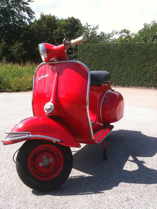 Har en skinande röd Super från 62 med härliga 150 cc. Går bra maskiellt och aldrig problem med besiktning. Motorn är helrenoverad för ca 75 mil sedan (ett par år sen) då hela vespan plockades ner. Den är inte verkstadslackad men ändå rätt fin, några få märken.
