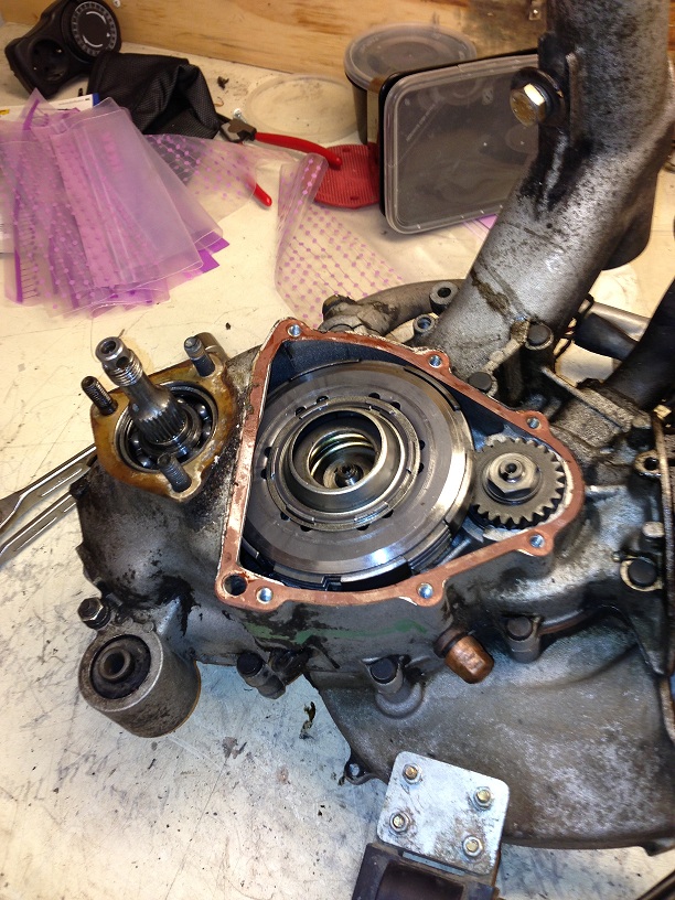 Konstaterade att vevaxelpackningen på kopplingssidan inte såg något vidare. Förhoppningsvis var det där som tjuvluften tog sig in.