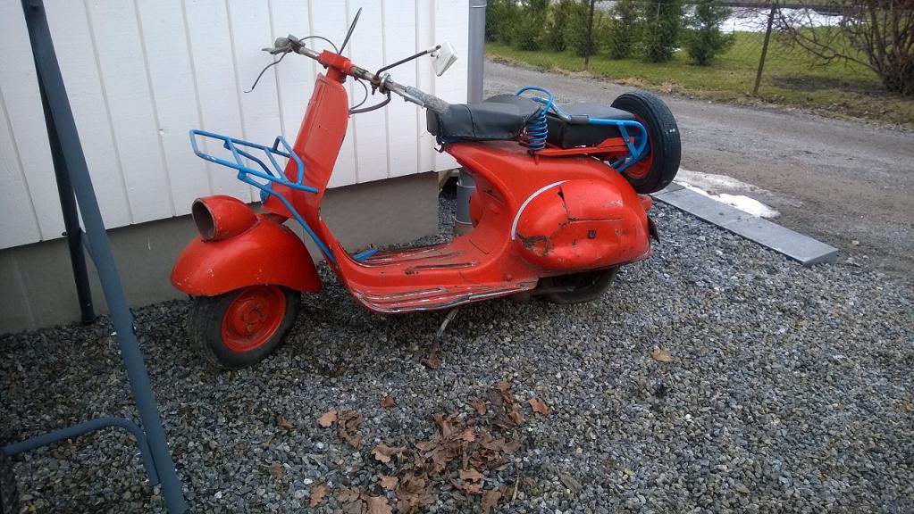 Vespan är blästrad, och har bytt ut lite dålig plåt och knackat ut dom flesta bucklor!