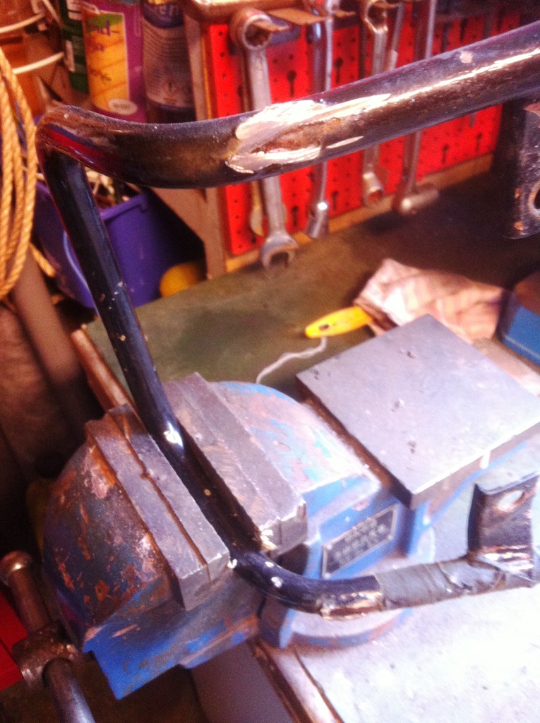 - ...och resterna av den gamla pakethållaren skars bort från lyftbygeln.