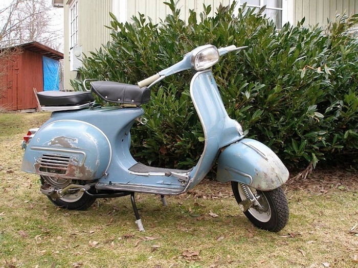 Mätartavlan ser ut att vara från en VMA1T, då sköldloggan ännu användes. Egentligen ser hela scootern ut som en tidig "ur"-primavera, med 90ss sätet, inga hål för primavera loggan ovanför baklyset. Hur ser karossen ut bakom hexagonet på framskölden? Där ser man bra vilken logga som suttit där ursprungligen. Är förgasaren en 16/16 el 19/19?