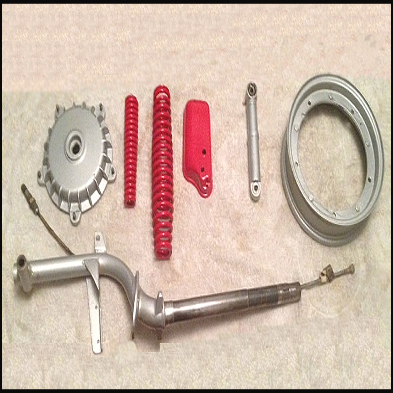 En god vän tog med några detaljer "till jobbet" och redan nästa dag kom en del bilder - jag försöker att bifoga en av dem i hopp om att jag gjort rätt. Dessa bilder gav mig ny styrka - man är inget utan vänner , den saken är klar. Jag har tänkt mig silverfälgar och röda fälgar sant rött centralstöd, helt enkelt för att detta är ett bra kännmärke. Den gula färgen på bilden är givetvis, som alla förstår, en rostskyddande grundfärg.
