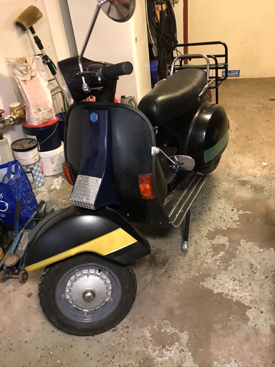 Jag köpte en billig PX -84 i januari. (kanske finns någon av tidigare ägare här på forumet) Maskinellt verkade den ganska bra och det sitter en trimmad VL B2M motor från -69 i den, 4vxl, Malossi 177cc (gjutjärn), SI 24/24 och effektblås.
